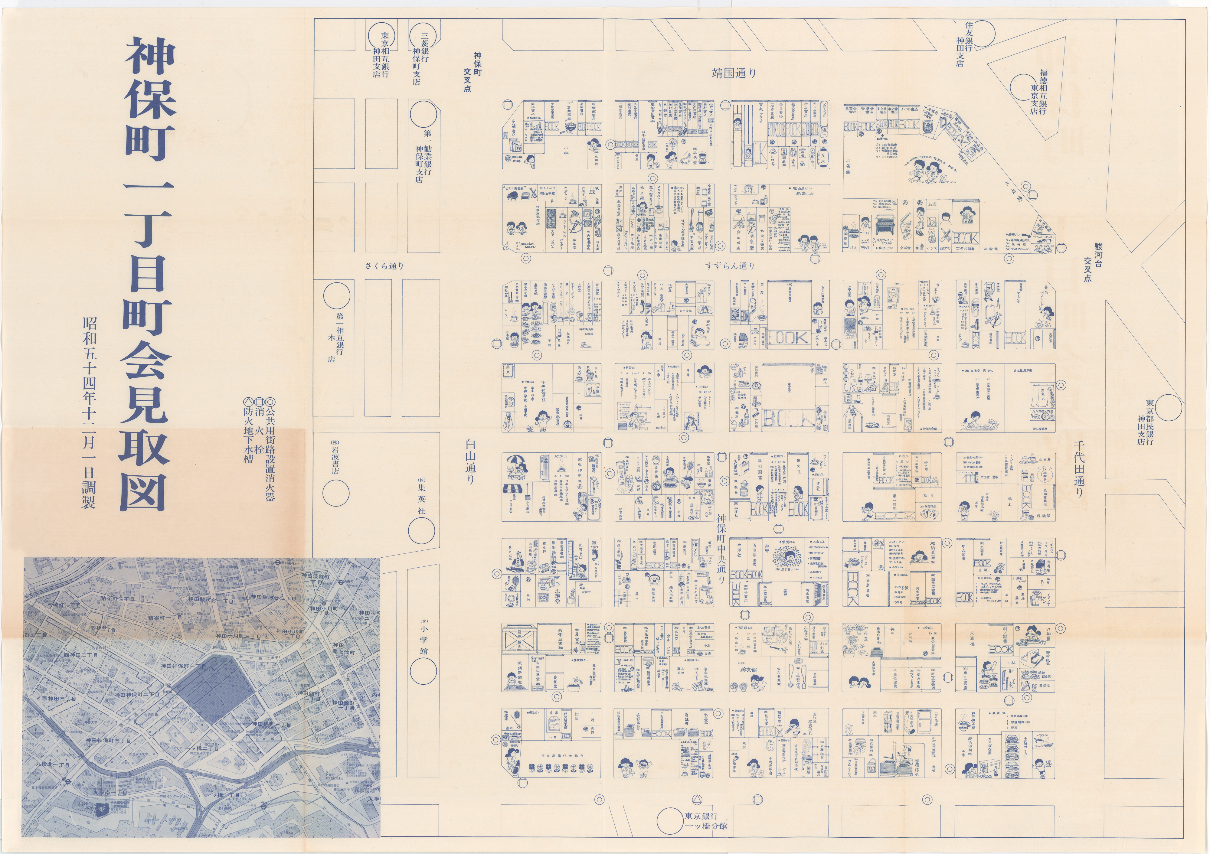 昭和54年12月1日発行、神保町1丁目の個人商店を中心とした町の見取り図。